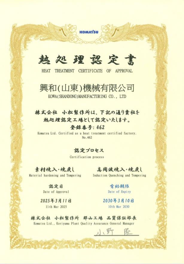 本公司成立于2008年在山東省濟(jì)寧市,是日本株式會(huì)社興和工業(yè)所在海外投資成立的一家全日資企業(yè),總投資額42億日元,占地面積27,325㎡,引進(jìn)日本株式會(huì)社興和工業(yè)所先進(jìn)的生產(chǎn)技術(shù),進(jìn)口國(guó)外數(shù)控自動(dòng)化設(shè)備,工程、礦山機(jī)械制造企業(yè)之一——小松集團(tuán)也以出資方式參與了本公司的建設(shè)。