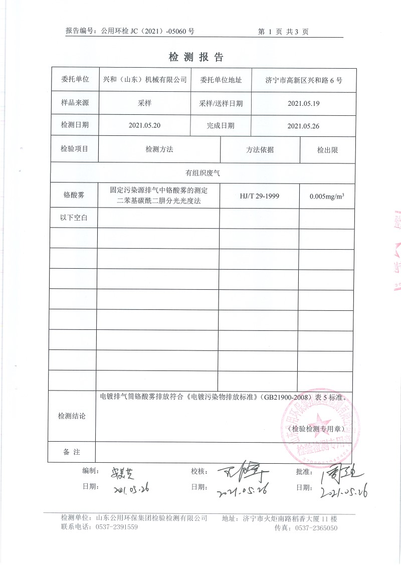 2021年5月8#排氣筒鉻酸霧檢測報(bào)告