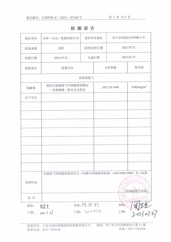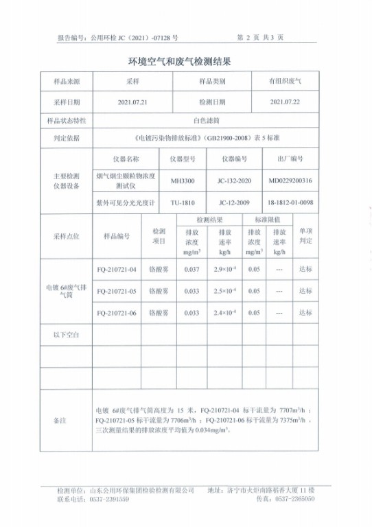 2021年7月鉻酸霧6#排氣筒——鉻酸霧檢測報告