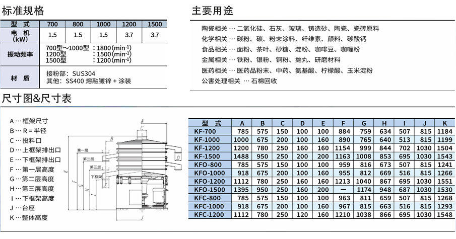 KF 系列無論是干式還是濕式都可輕松使用,是振動篩分機(jī)各系列中性價(jià)比最高的類型。